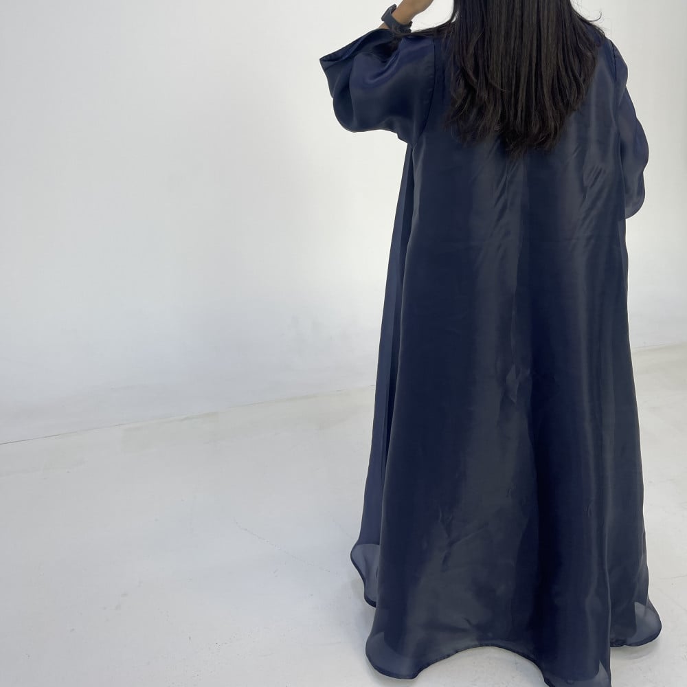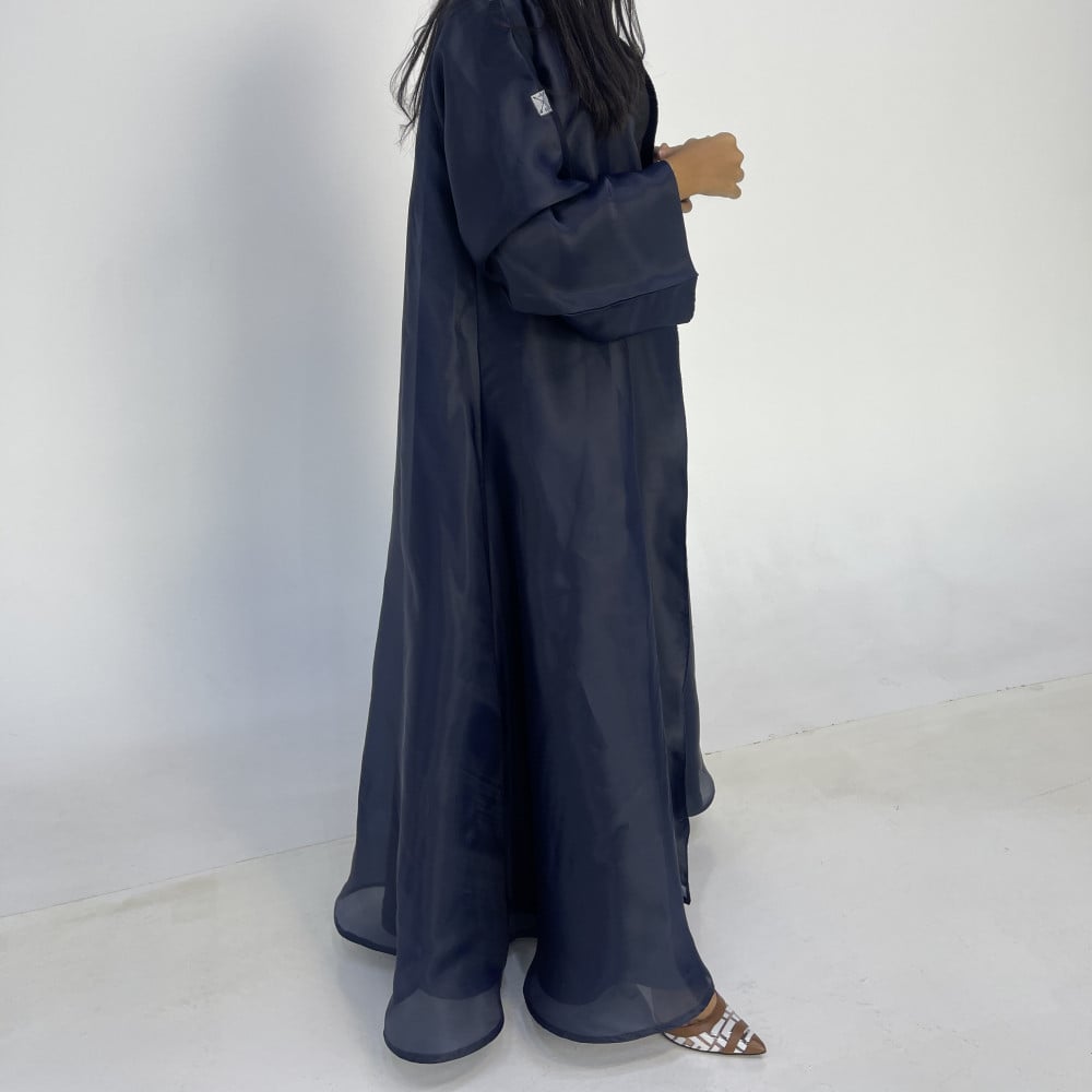 عبايه من قماش الاورقنزا فيلو لمعة من طبيعة القماش مبطن بتفته كريب وطرحه مع طرف طويل اورقنزا